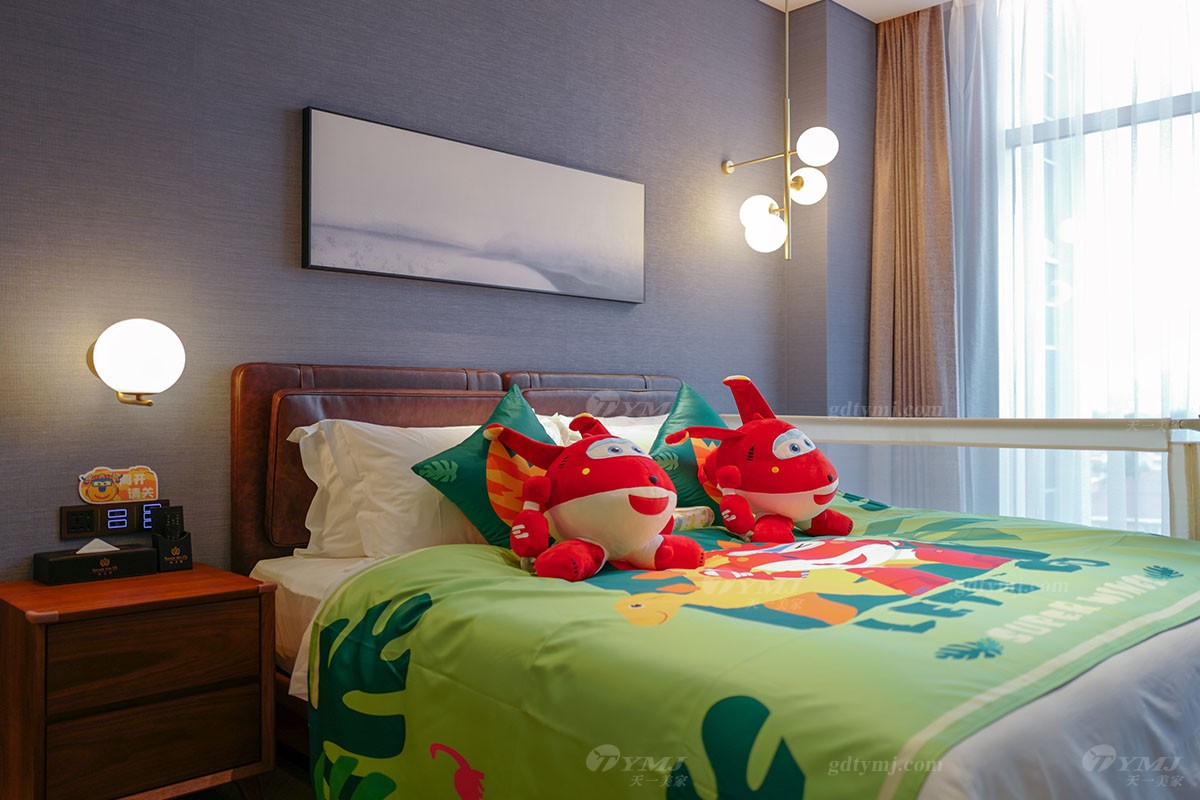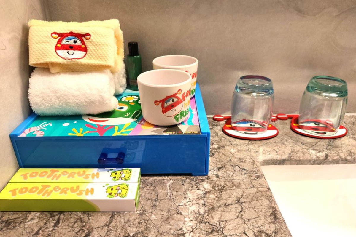 温馨有趣的主题亲子房分别以小朋友非常喜爱的儿童动画片《超级飞侠》、《猪猪侠》、《巴啦啦小魔仙》等系列为主题而进行精心设计打造,无论是客厅、卧室,还是洗手间的布置装饰,随处都可见到主题动画里活泼有趣勇敢的主角们的元素,主题亲子房还配备了相关的儿童帐篷、玩偶、小滑梯,小动物坐凳等等,通过这些透露着爱与细致、并融入了主题元素的活动家具软装的点缀装饰,让房间内瞬间充满活力与趣味性,营造出一个既温馨自然又充满趣味与想象力、大人和小孩都能乐享其中的美好空间。