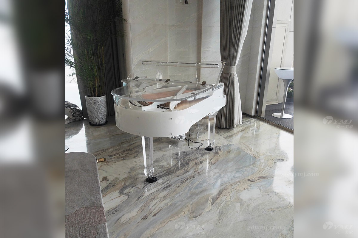 超大的客厅居住空间,达7.2米的超高层高,绝对的宽敞明亮,采光充足,U型皮布艺结合沙发组合,简约大气、舒适自然,穿过钢化玻璃门直通超大阳台,阳台上种满了花草,枝繁叶茂,花团锦簇,香味怡人;客厅一角矗立着一架纯白色水晶三角钢琴,犹如一件优雅的艺术珍品,闲暇时,弹上一曲,美妙的音符仿佛也在诉说着喜悦,客厅旁边即是由白色大理石打造的大吧台,吧台两端凸出的半球造型,显得分外雅致有趣,整个偌大的空间,不论是会客还是家庭聚会,都可满足你所有的想象。