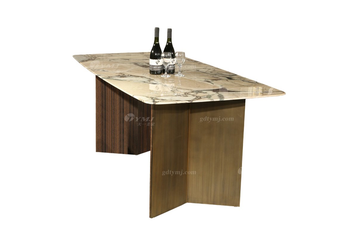 极简风格家具LUTUBE视频在线观看别墅会所简约不锈钢仿古铜拉丝+天然大理石餐台