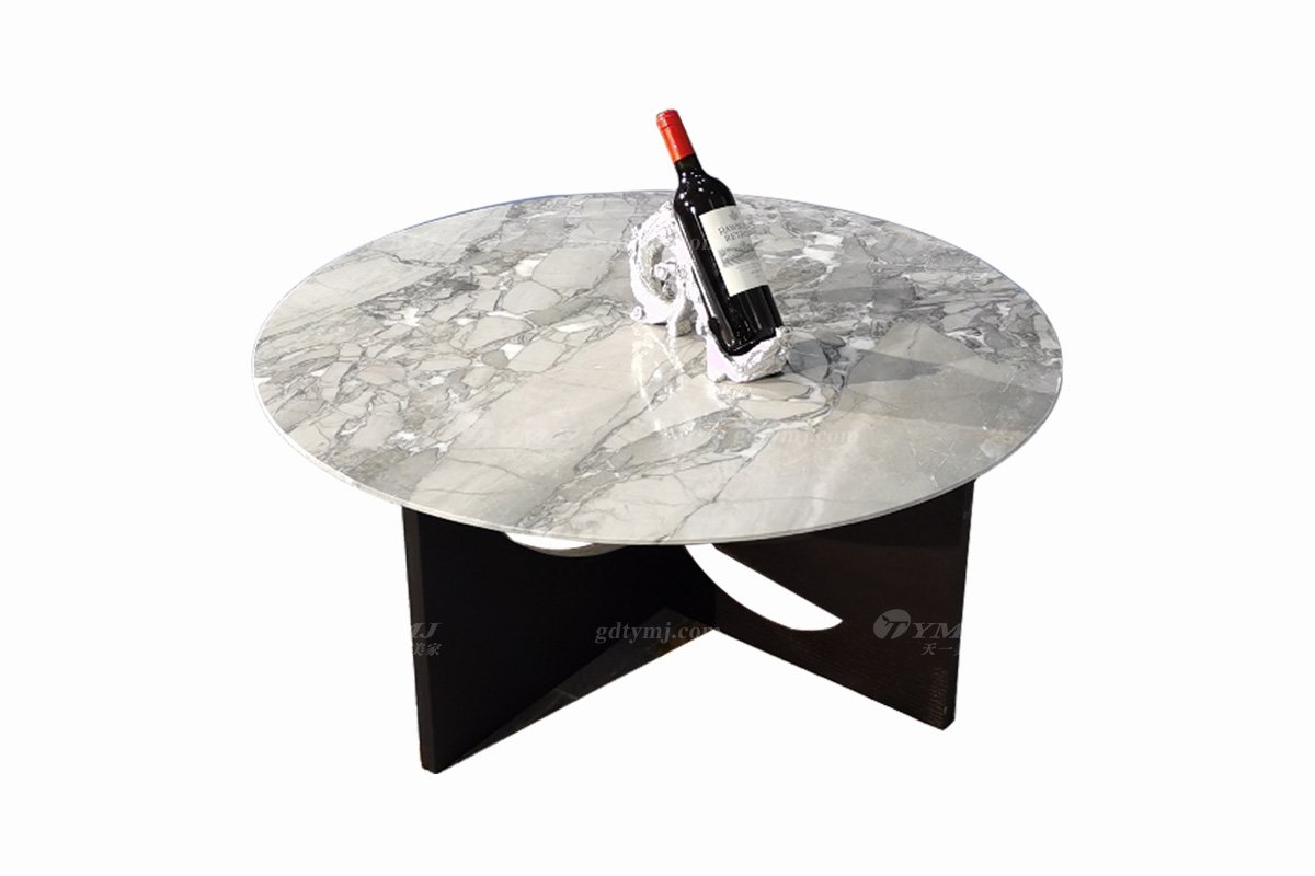 极简风格家具LUTUBE视频在线观看别墅会所简约烟熏木皮+天然大理石圆几