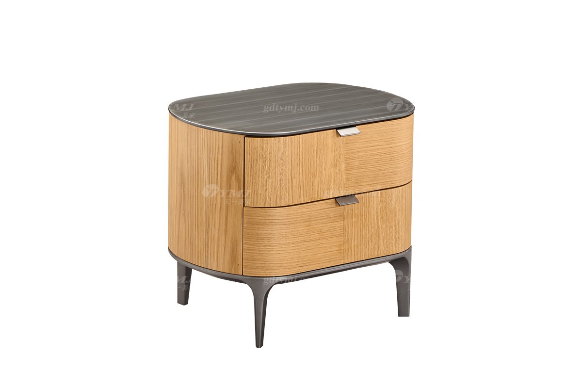 时尚LUTUBE视频在线观看意式极简家具大宅家用白橡木色+枪黑拉丝实木脚床头柜