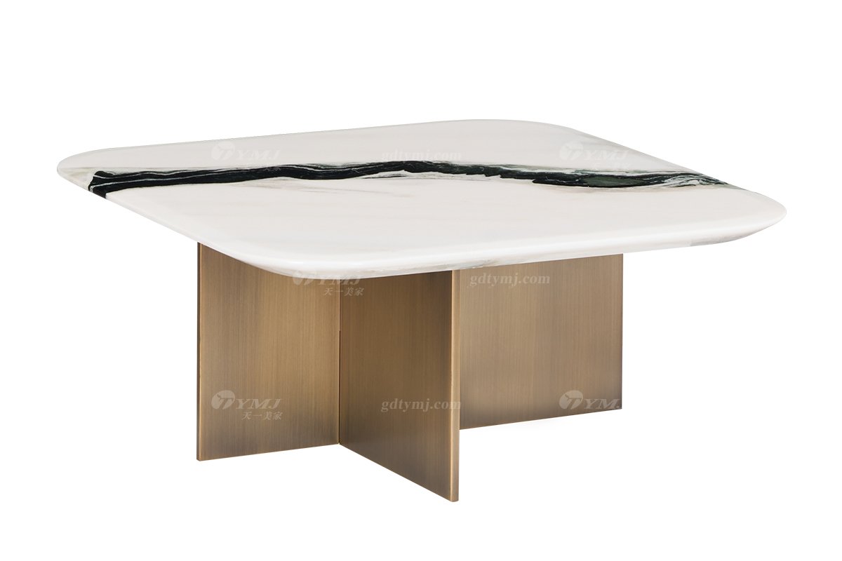 时尚LUTUBE视频在线观看意式极简家具别墅家用豪宅黄古铜金属底+天然大理石小方几